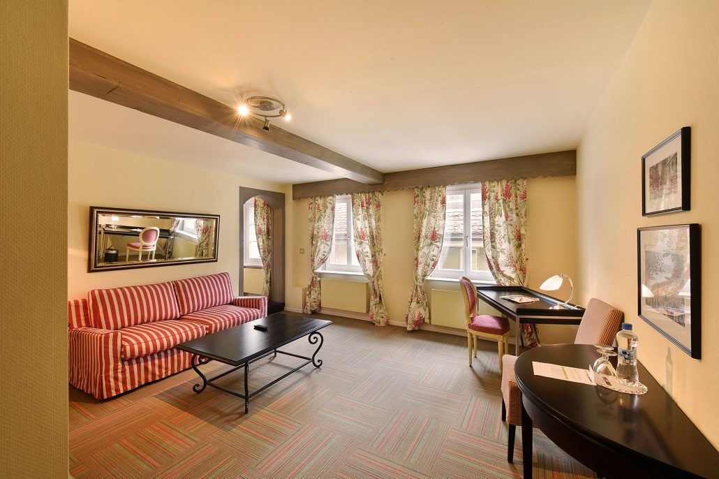 Diese charmant eingerichtete Suite auf der zweitobersten Etage bietet ein grosszügiges Wohnzimmer mit Sitzecke und Schlafsofa, einen Arbeitsplatz sowie ein grosses, separates Schlafzimmer mit einem Doppelbett (180cmx200cm) für zwei Personen, sowie ein separates Einzelzimmer das auch als Nanny-Room genutzt werden kann. Auf Wunsch ist ein zusätzliches Einzelzimmer über eine Verbindungstür verfügbar.
