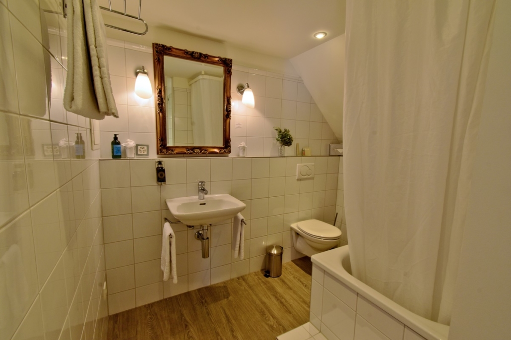 Das eigene grosszügige Badezimmer mit Badewanne und Dusche ist mit den exklusiven Pflegeprodukten der Marke L’OCCITANE en Provence ausgestattet.
